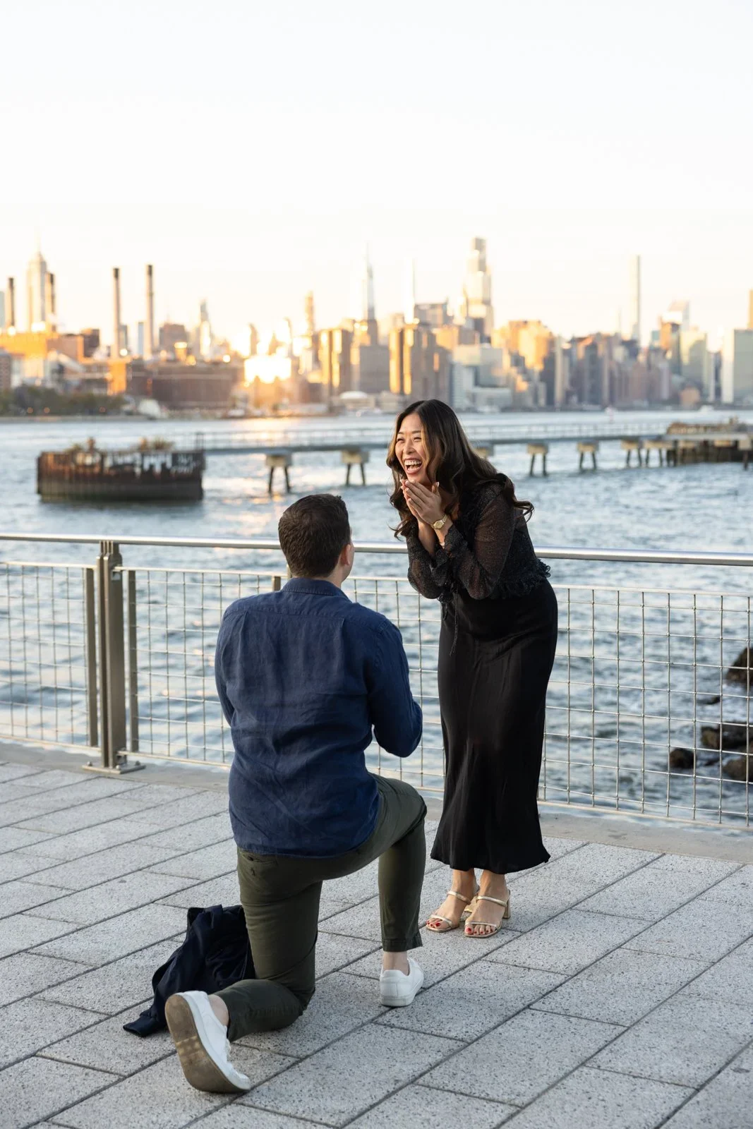 Gantry Plaza in Long Island City is one of our favorite places to photograph proposals. The unobstructed views of New York City and the Empire State Building are unrivaled. If you love New York City and it is a part of your story, then Gantry Plaza is the place to propose. It’s also not a busy NYC location for tourists. This spot beats Brooklyn Bridge Park if you’re looking for views of NYC and a private place to propose.