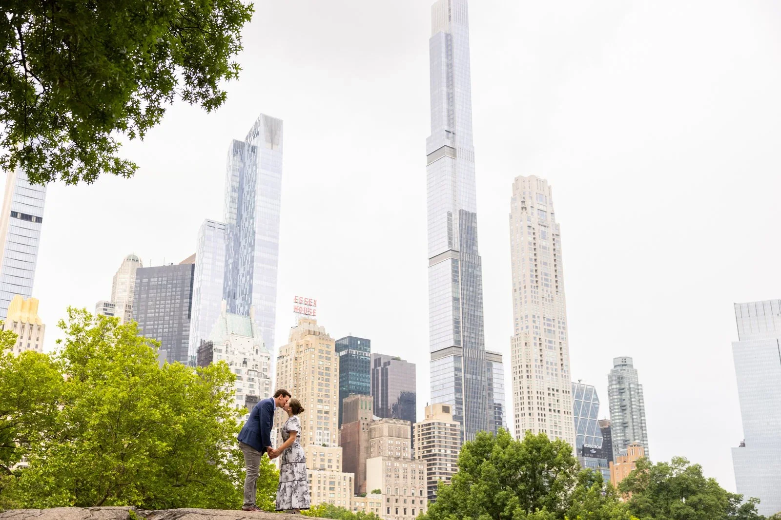 If you’re looking for a classic NYC skyline view in your proposal photos, Cat’s Rock is hard to beat. Perched above Wollman Rink near 58th Street, this overlook offers sweeping views of Billionaire’s Row and the surrounding skyscrapers. It’s a dramatic and memorable location, especially if you want your images to include both the beauty of the park and the energy of Manhattan. The contrast of greenery with towering glass buildings makes for unforgettable photos.